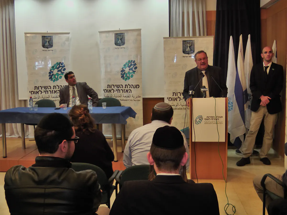 מנכ"ל מנהלת השירות האזרחי-לאומי, שר-שלום ג'רבי, נפגש עם המתנדבים וענה באריכות לשאלותיהם. ג'רבי דחה את הביקורות שהושמעו נגד החלטת הממשלה על חידוש הגיוס לשירות האזרחי וציין כי רבים מבני המגזר החרדי רוצים לשאת בנטל.