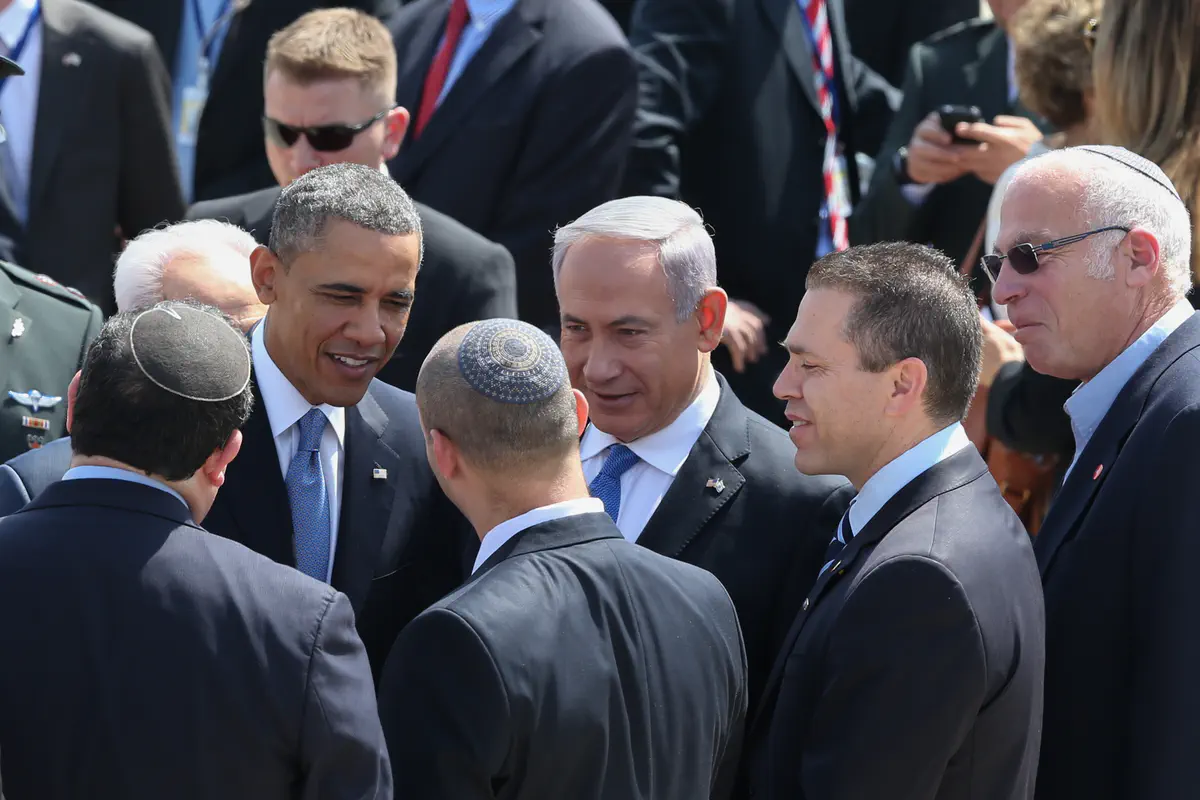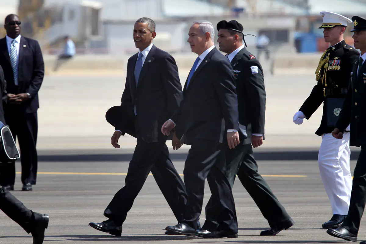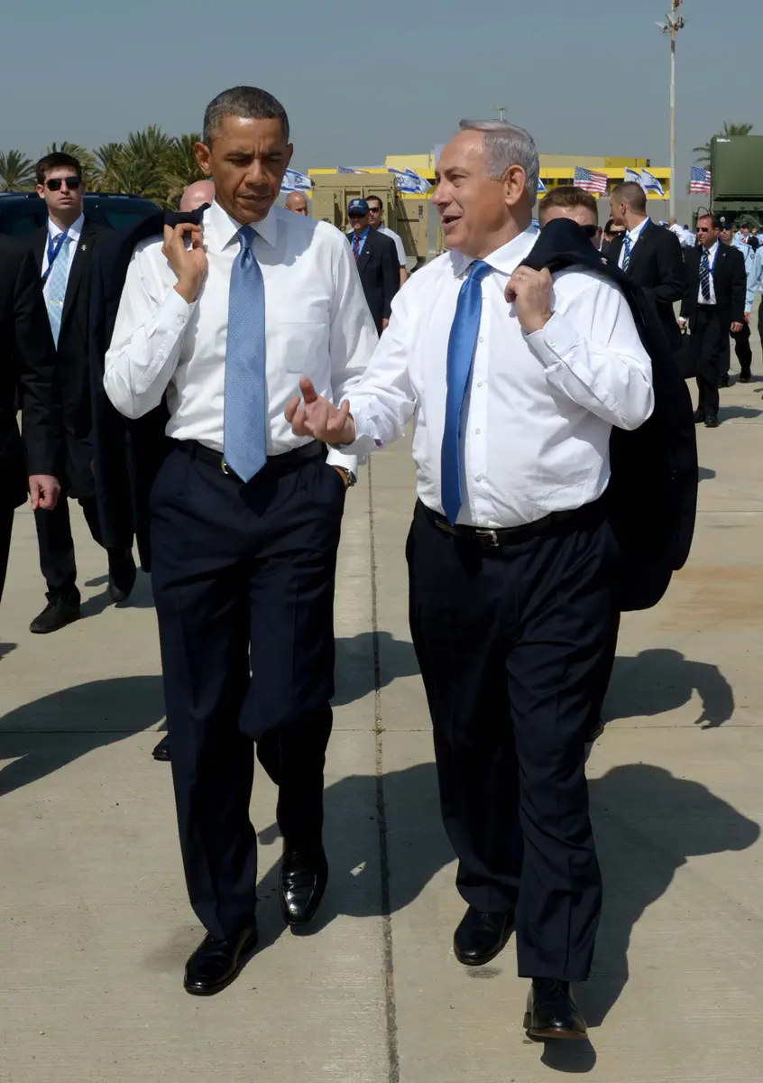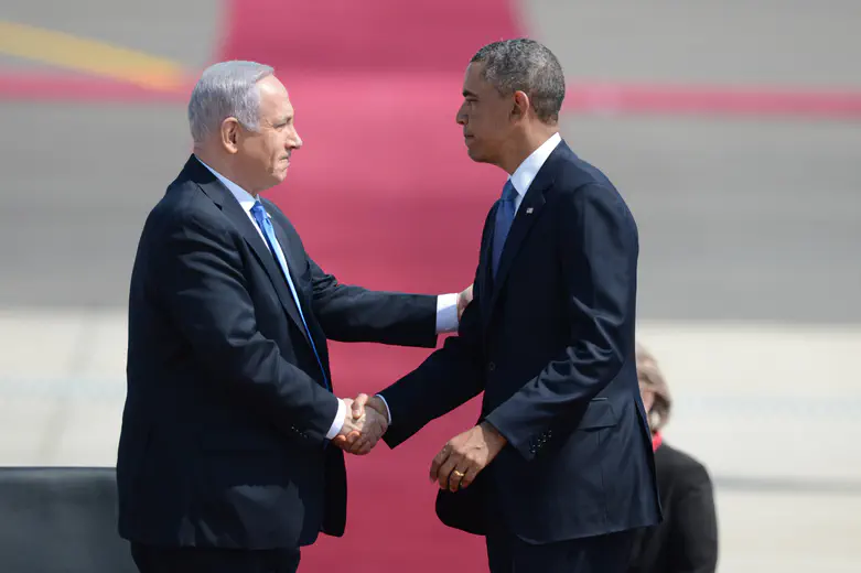 ראש הממשלה נתניהו פנה מעל בימת הנואמים לנשיא האורח, הזכיר את הבדלי הגודל בין ישראל לארה"ב אך עם זאת שתי מדינות בעלות עקרונות דמוקרטיים. נתניהו הודה בשם העם בישראל לאובמה ולעם האמריקאי על העזרה והתמיכה בישראל, על העמידה לימינה של ישראל במאבקיה הביטחוניים והאחרים.