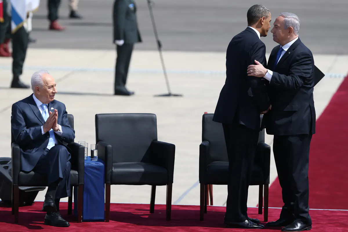 אובמה דיבר בנאומו הקצר על קשרי הידידות בין ארצות הברית לישראל, ואמר כי הוא גאה לעמוד ליד אדם כמו פרס, שהקדיש את חייו למען ישראל. "ילדי ישראל רוצים להיות חופשיים מטרור", הוסיף.