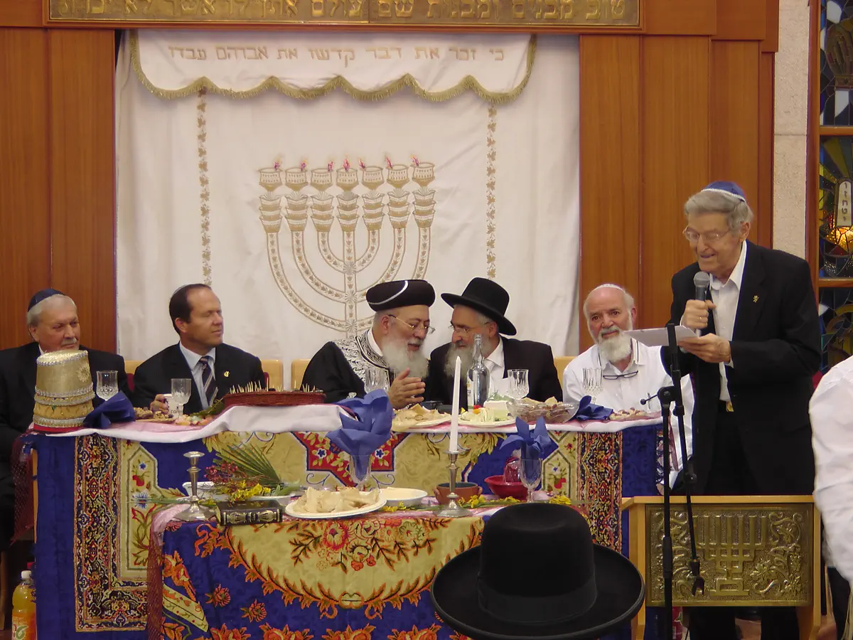 בבית הכנסת "זכור לאברהם" בקריית מנחם בירושלים נערכת חגיגת המימונה המרכזית של העיר בהשתתפות ראש העיר ניר ברקת, הרב שלמה עמאר, הרב ד"ר יעקב הדני ואישי ציבור.
