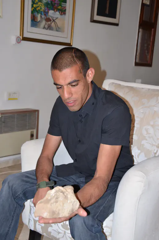 אמו של אחיקם שומרת על האבן ששינתה את מסלול חייו של בנה ושל משפחתה. "תמיד האמנו שאבנים הן נשק ואנחנו סובלים מהאבן הזאת במשך עשורים," אומרת עדנה כאשר היא מחזיקה את האבן הענקית בידה. "בגלל הדבר הזה, שליש מהמוח של הבן שלי חסר, הוא צולע, הוא סובל מבעיות בגב, אין לו תחושה ביד ימין וכל צד ימין שלו חלש. אני לוקחת אותו לטיפול פיזיותרפיה שלוש פעמים בשבוע. כאשר הוא נולד, היו לי כל כך הרבה תקוות וציפיות בשבילו. היה לו כל כך הרבה פוטנציאל."