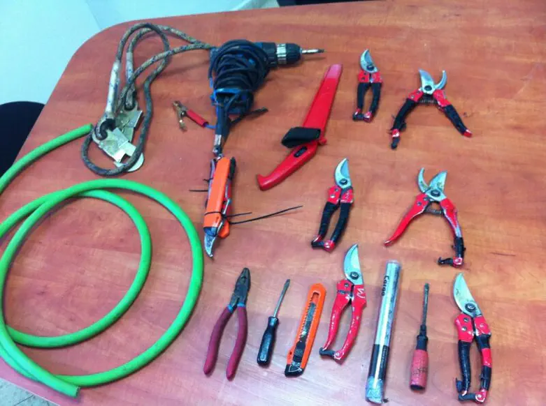 בידי השישה כלי עבודה שחיש מהר החלו לפרק את חלקי הרכב במהירות ונכנסו בזריזות לרכבם כאשר רכב הפיתיון הושחת ונגנבו ממנו חלקים כולל רדיו ורמקולים.