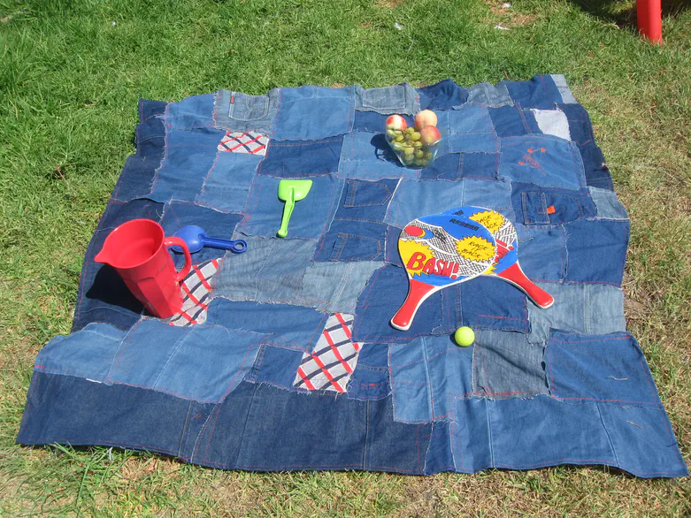 אספתי מספר בגדי ג'ינס משומשים - שלוש חצאיות וזוג מכנסיים אחד, גזרתי בגזירה חופשית, תפרתי בתפירה עוד יותר חופשית, ויצאה לנו שמיכת פיקניק מעוצבת לחופש. וכשעסיס האבטיח נשפך - אל דאגה, כביסה קטנה והכול כמו חדש. והעיקר - לא תתקשו לזהות את מקום הישיבה שלכם בין שאר המחצלות.