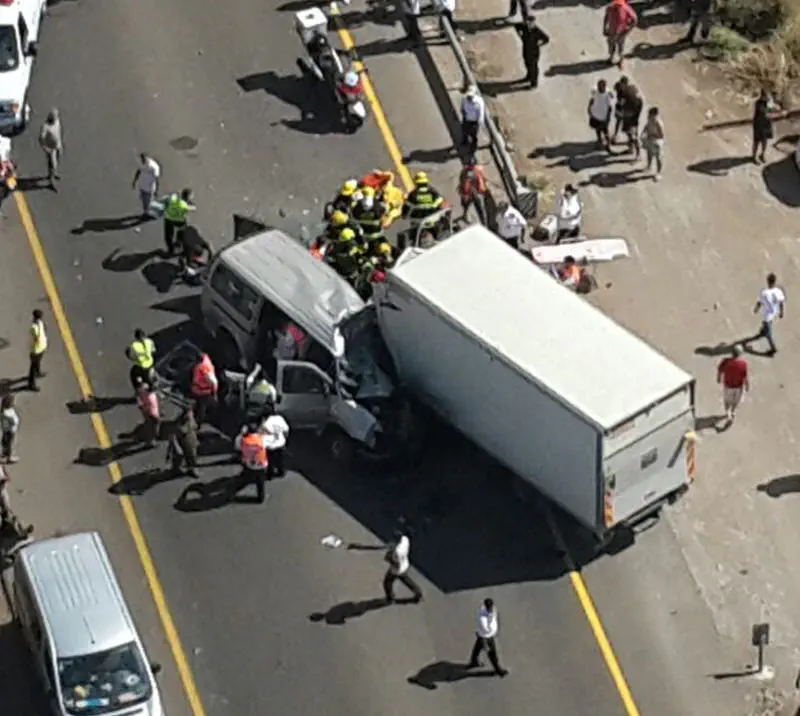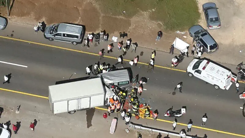 שישה בני אדם נפצעו בתאונה, באורח קל עד בינוני. הכביש נחסם לתנועה.