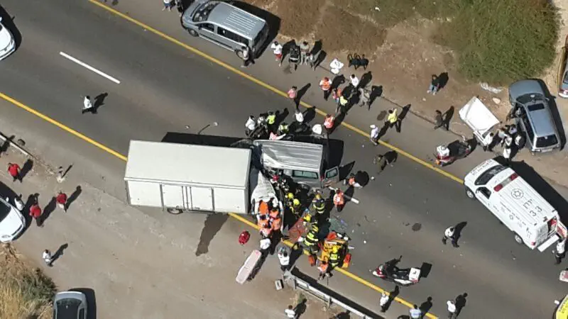 גבר בשנות ה-50 לחייו ואישה נהרגו היום (שלישי) בהתנגשות בין רכב מסחרי ומשאית בצומת מגדל שעל כביש 90, בסמוך לכנרת.
