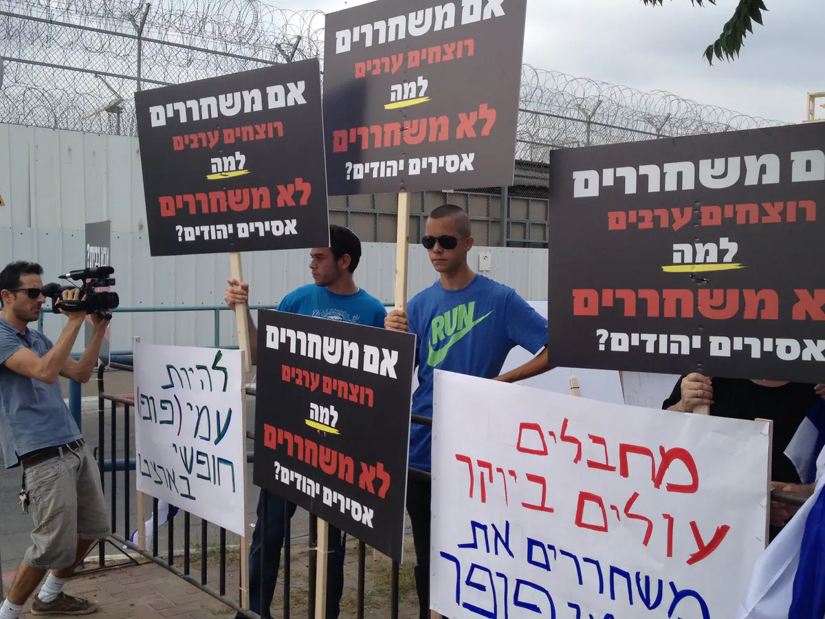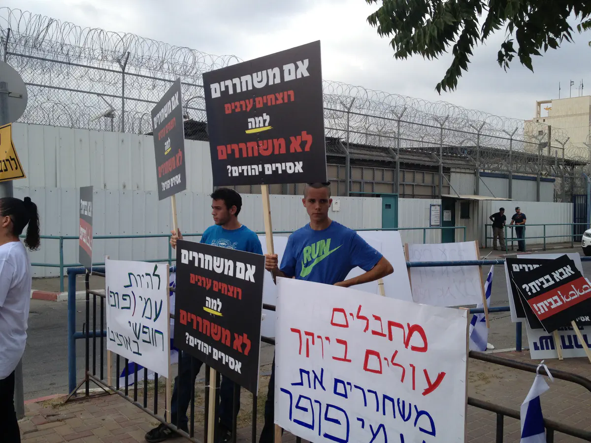 במקביל מקיימות משפחות האסירים היהודים הבטחוניים בשיתוף תומכי המאבק לשחרורם, הפגנה מחוץ לכלא איילון, במסגרתה הם דורשים את שחרור יקיריהם במקביל לשחרורם הצפוי של האסירים הערבים.