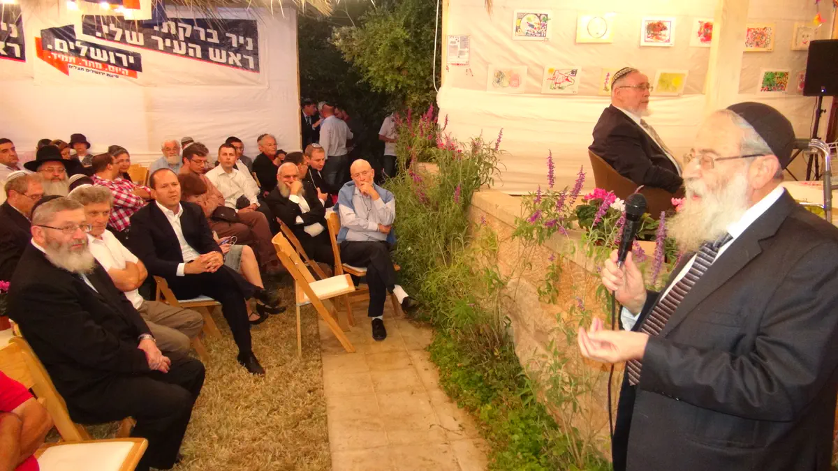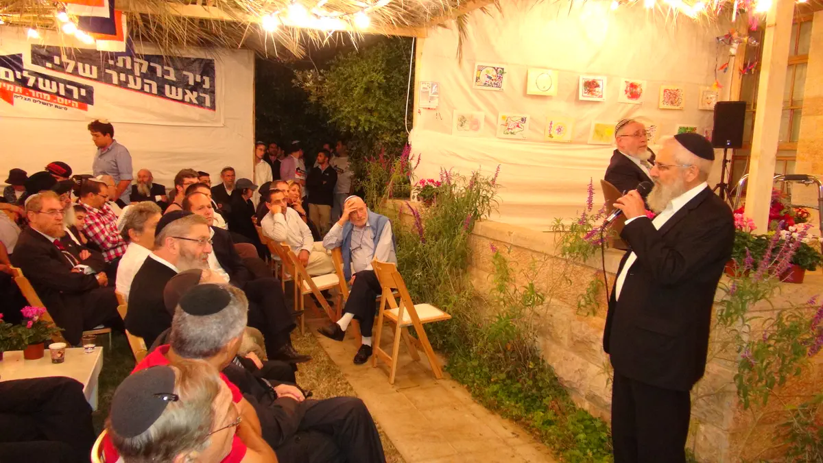 ראש העיר ירושלים, ניר ברקת, ורעייתו אירחו הערב (ג') בסוכתם מאות רבנים, ראשי קהילות ופעילי ציבור של הציונות הדתית.