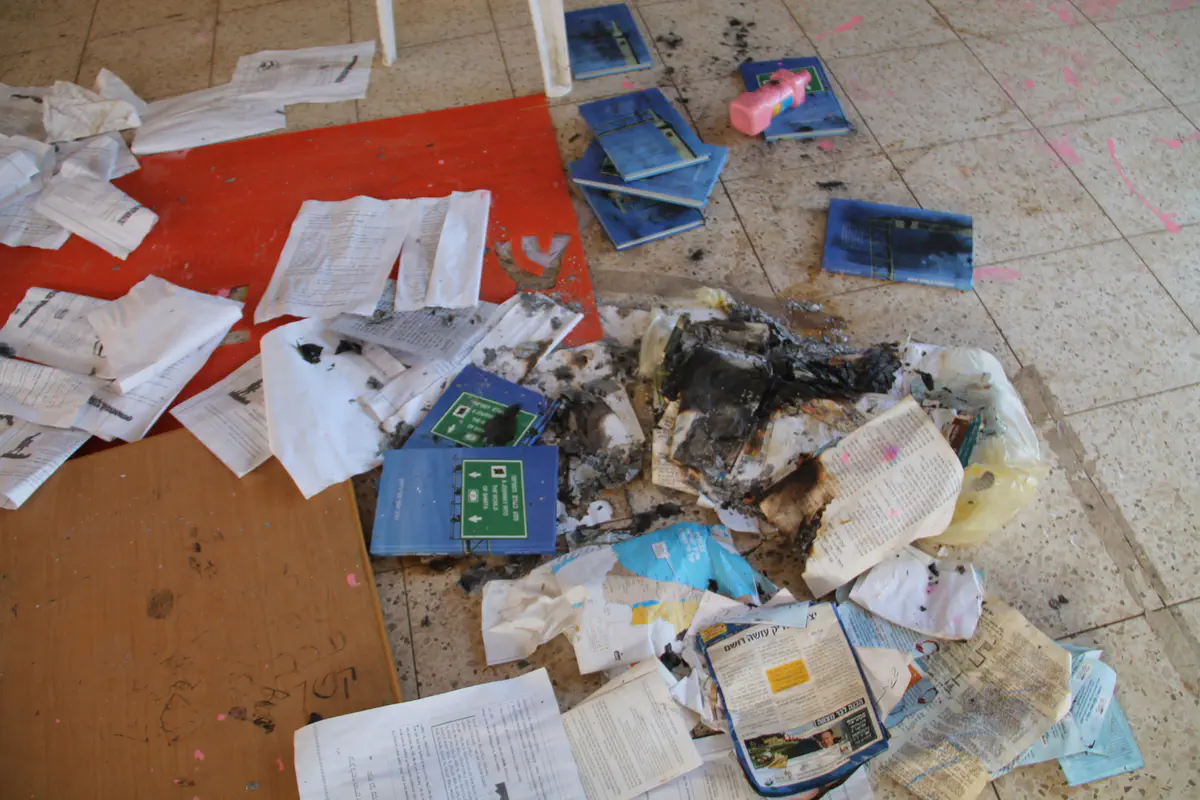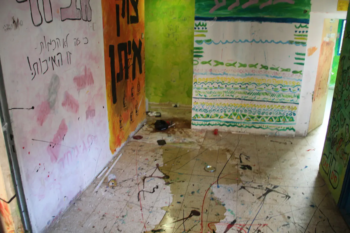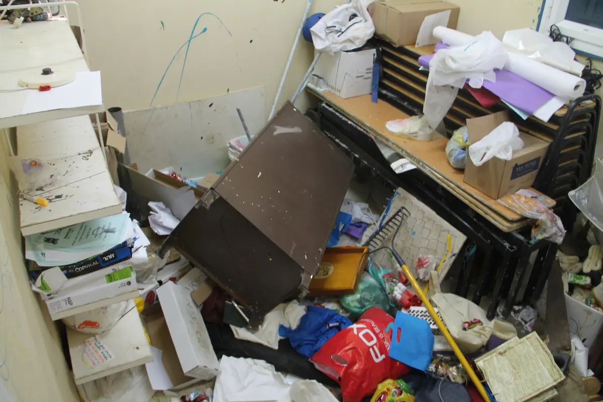בין השאר, דגלי ישראל הושלכו בביזיון רב, צבעי גואש פתוחים ופזורים לכל עבר, ארונות ציוד הפוכים, פלורסנטים שבורים ובית הכנסת של הסניף חולל והסידורים וספרי קודש שבו הושחתו ונשרפו.