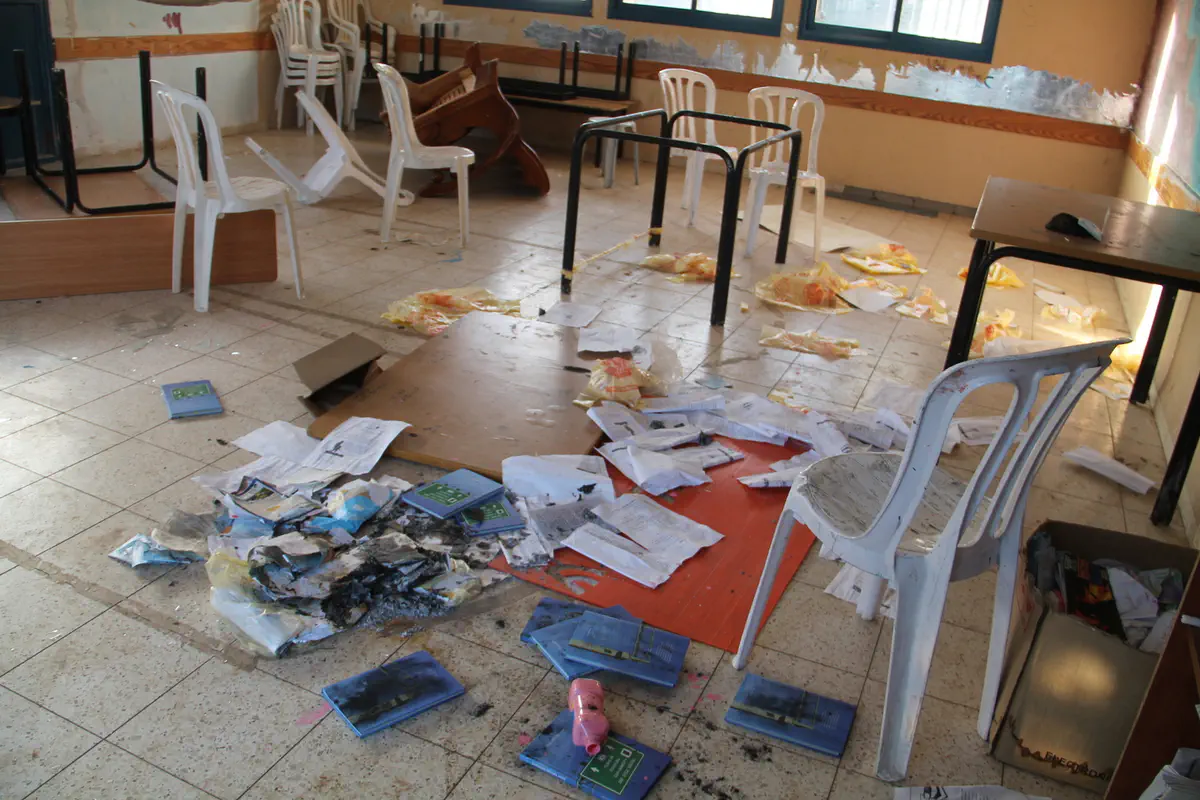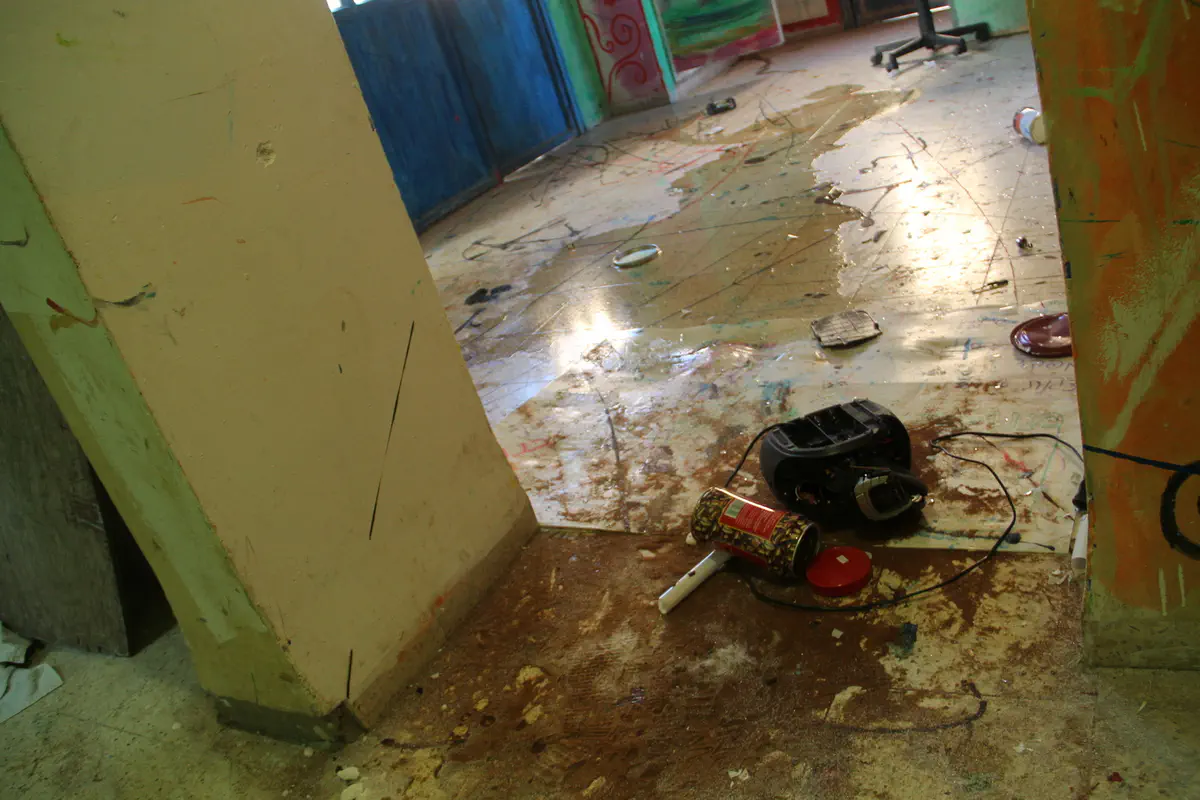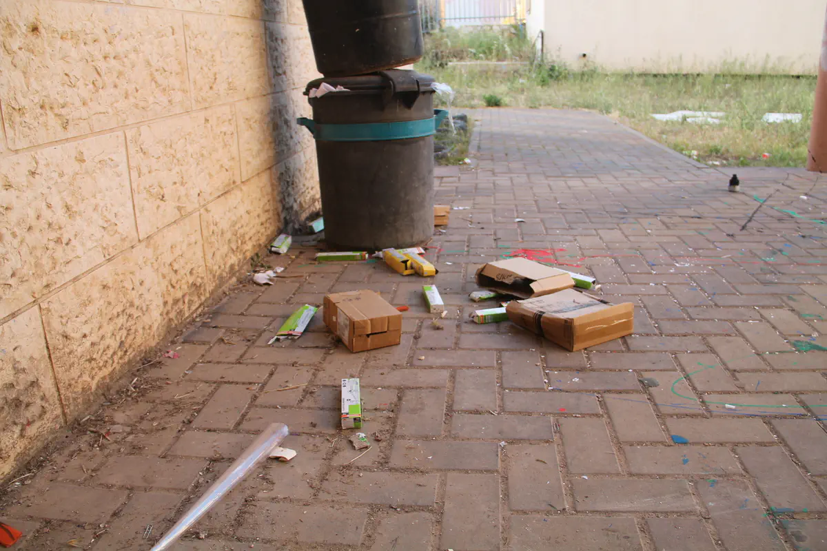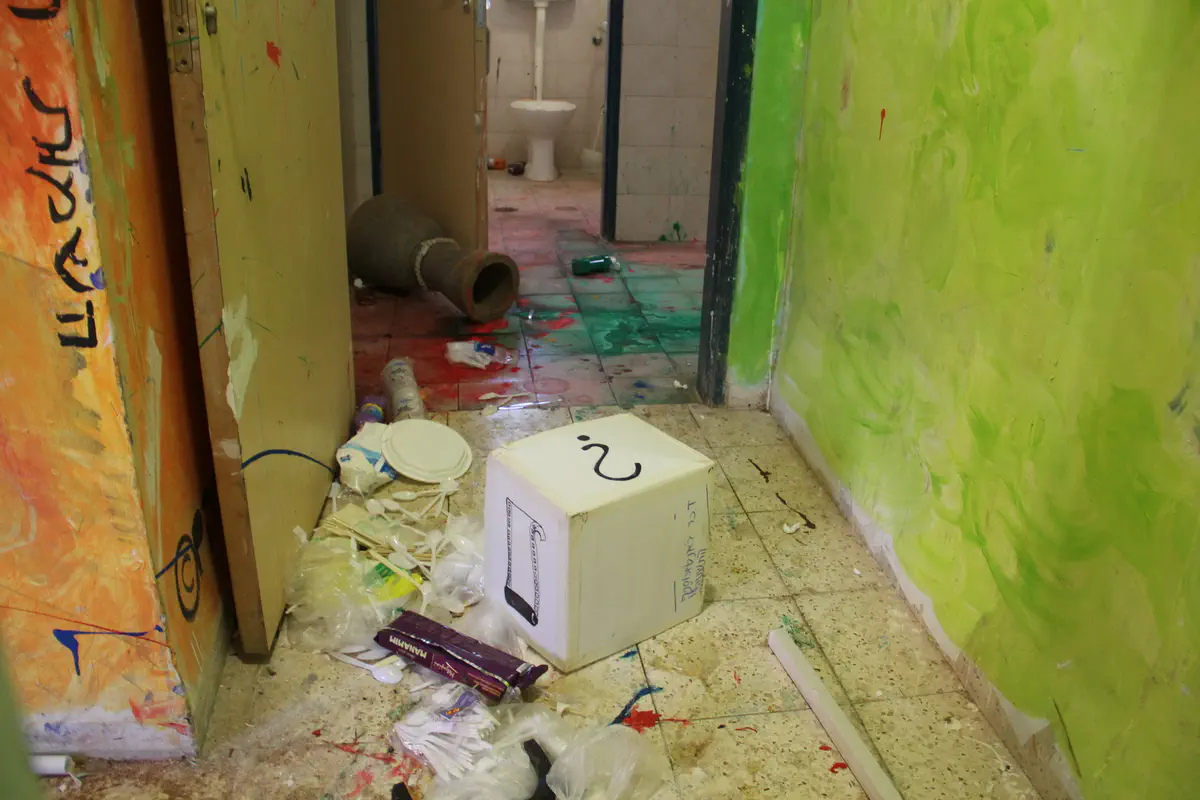בין השאר, דגלי ישראל הושלכו בביזיון רב, צבעי גואש פתוחים ופזורים לכל עבר, ארונות ציוד הפוכים, פלורסנטים שבורים ובית הכנסת של הסניף חולל והסידורים וספרי קודש שבו הושחתו ונשרפו.