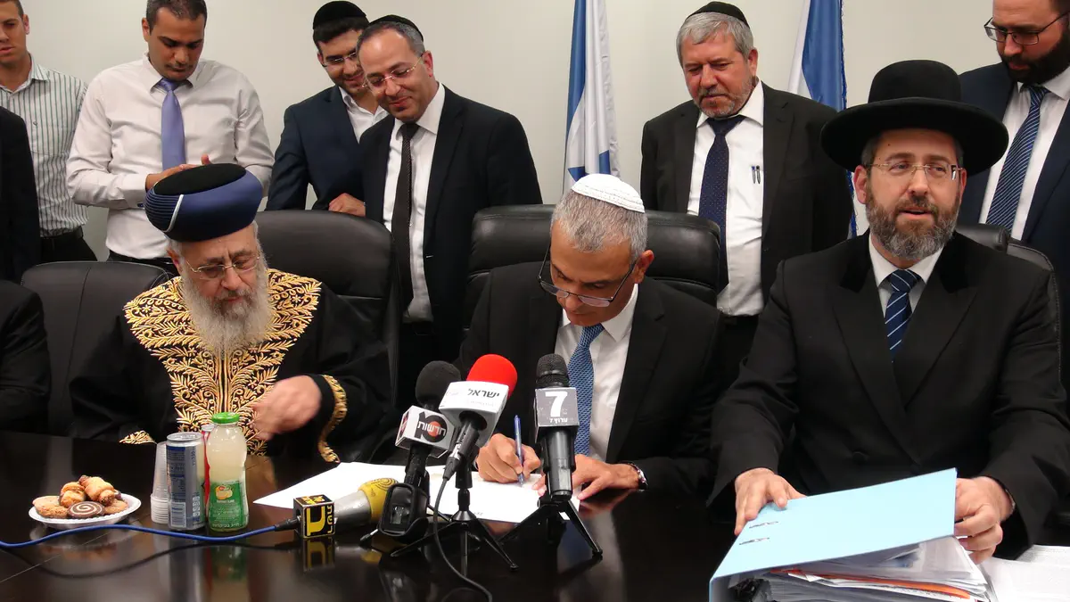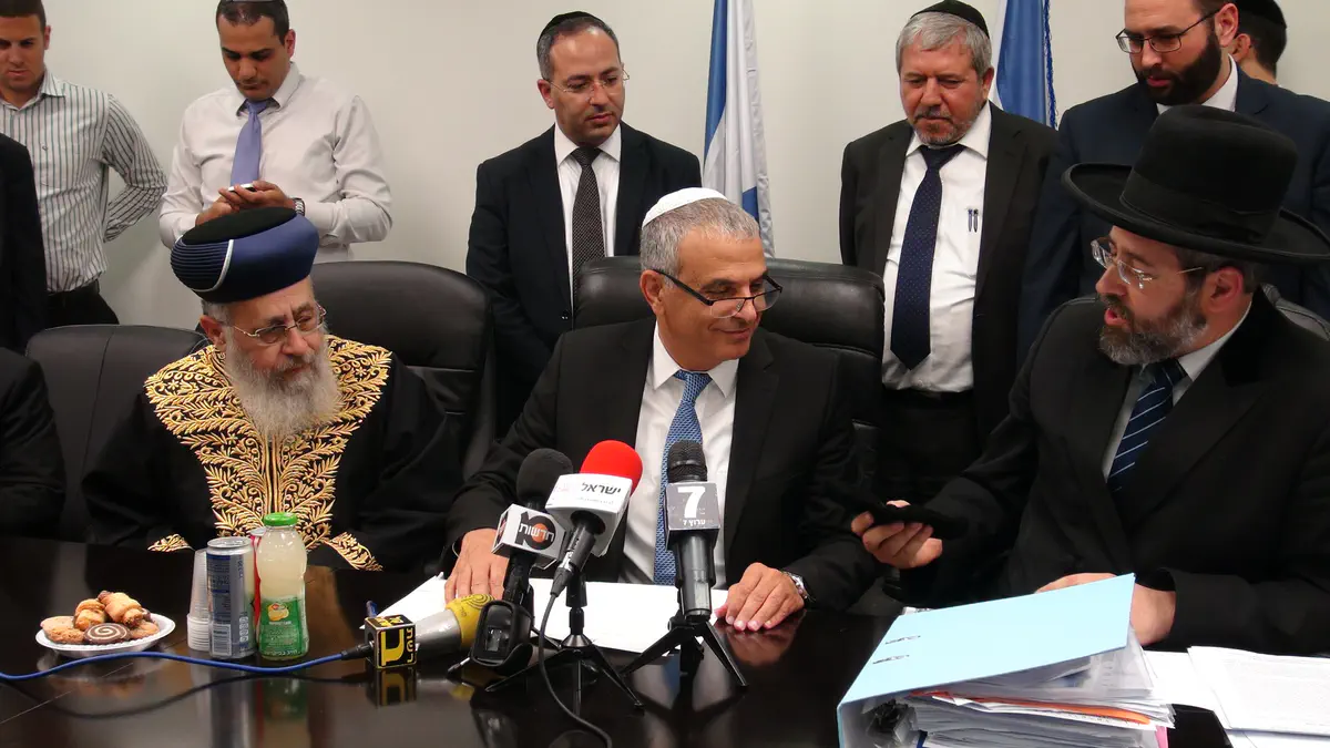 שר האוצר משה כחלון (כולנו) וסגנו ח"כ יצחק כהן (ש"ס) הגיעו בצהריים ללשכת הרב הראשי לישראל לטקס מכירת החמץ של המדינה לקראת חג הפסח.