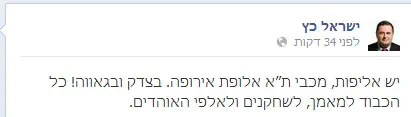 במערכת הפוליטית מברכים את מכבי תל אביב בכדורסל על ניצחונה בגמר היורוליג.