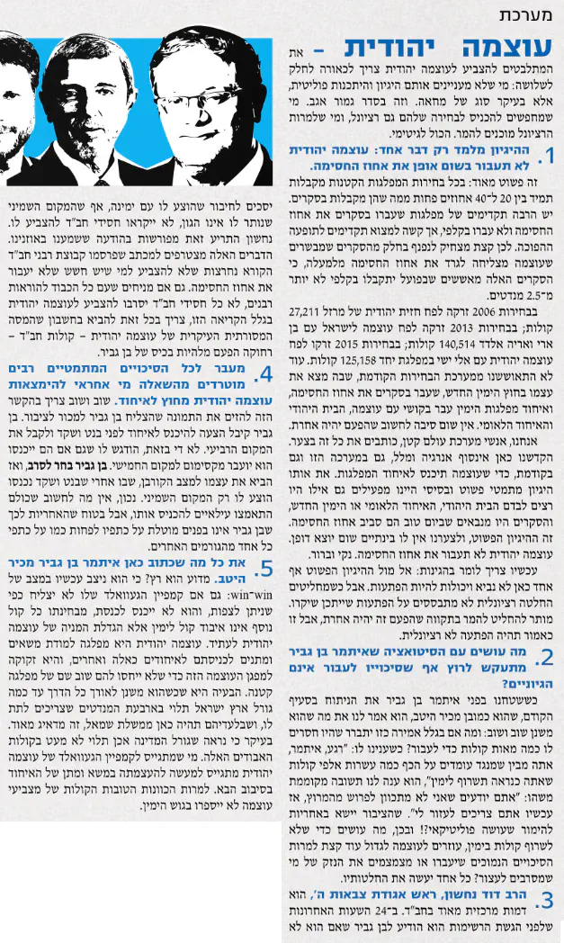 "אתמול בצהריים בסקר שהליכוד הזמינו עוצמה יהודית קיבלה 4.5 מנדטים".