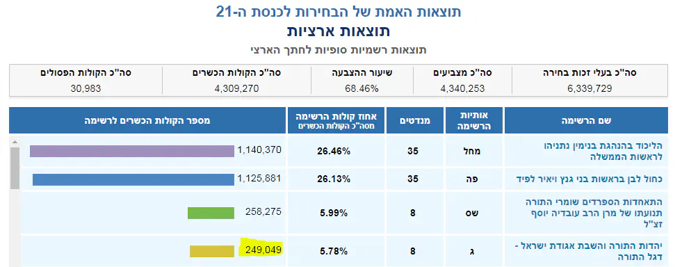 רק שהיא לא תעבור. בבחינת "גם לי וגם לך לא יהיה". עשרות אלפי הקולות של חב"ד והחרדלי"ם עברו לג' ברובם, ולא לימינה.
