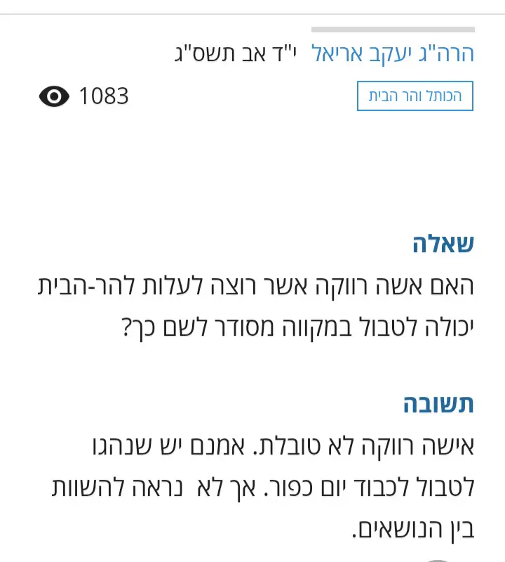 מוריד כי היא לא מקשיבה להוראה של רוב הרבנים שלא לעלות