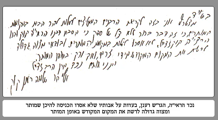 רבים מחותמי המכתב שלמטה (שאצלו החידושים עם רבנים גדולים נוספים) חתמו על מכתב שלא ישתמע מזה שהם תומכים בעלייה להר. זה כולל את הרב גרינברג, הרב הרשקוביץ, הרב אליקים והרב שחור. גם הרב דרוקמן ידוע שלא תומך בעלייה.