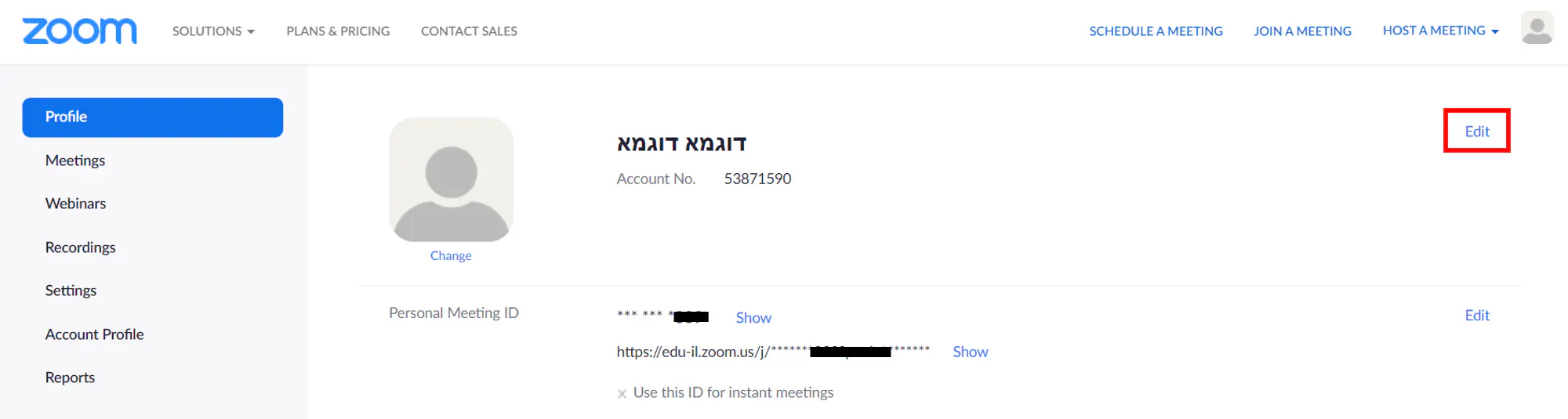 2. למעלה בצד ימין, בשורה שמופיע השם יש אפשרות Edit (מוקף בתמונה), לוחצים עליו.