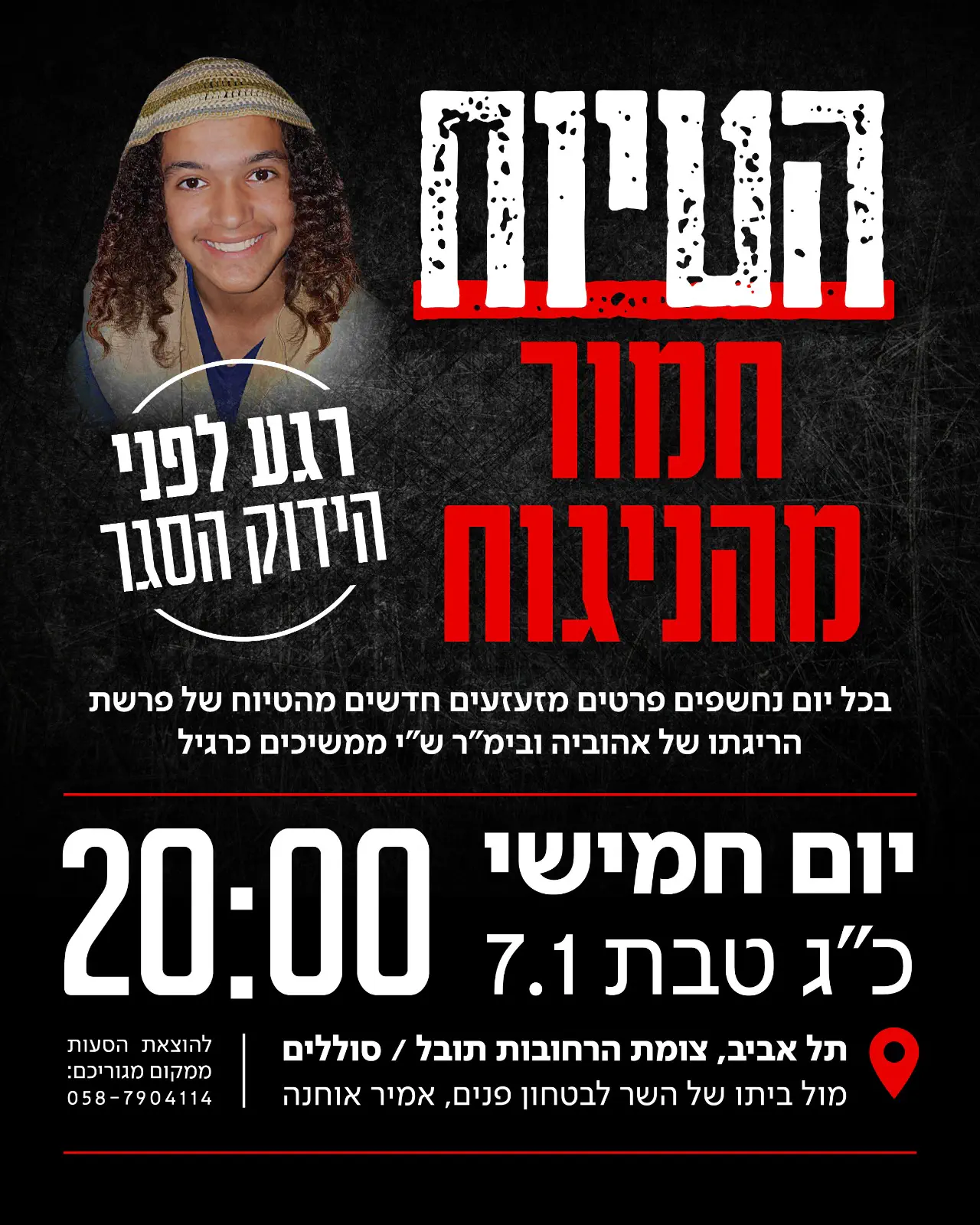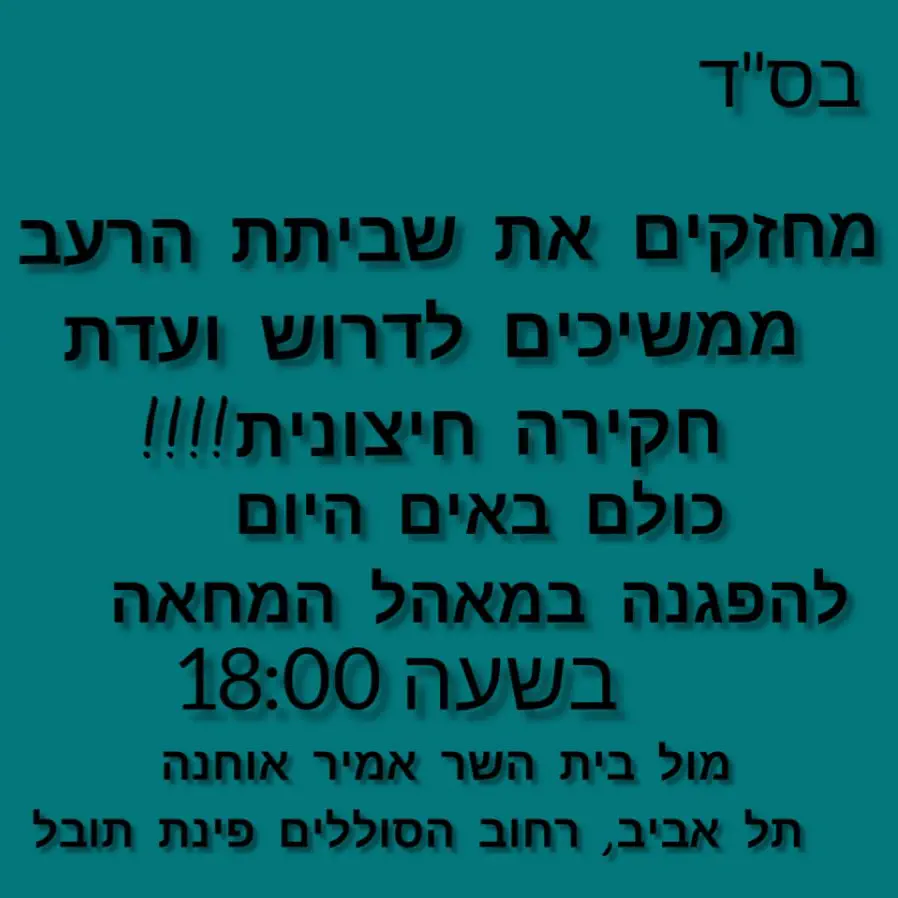 בעז"ה השבוע בכל יום הפגנות ב20:30 בגשר המיתריםתגל הארץאחרונה