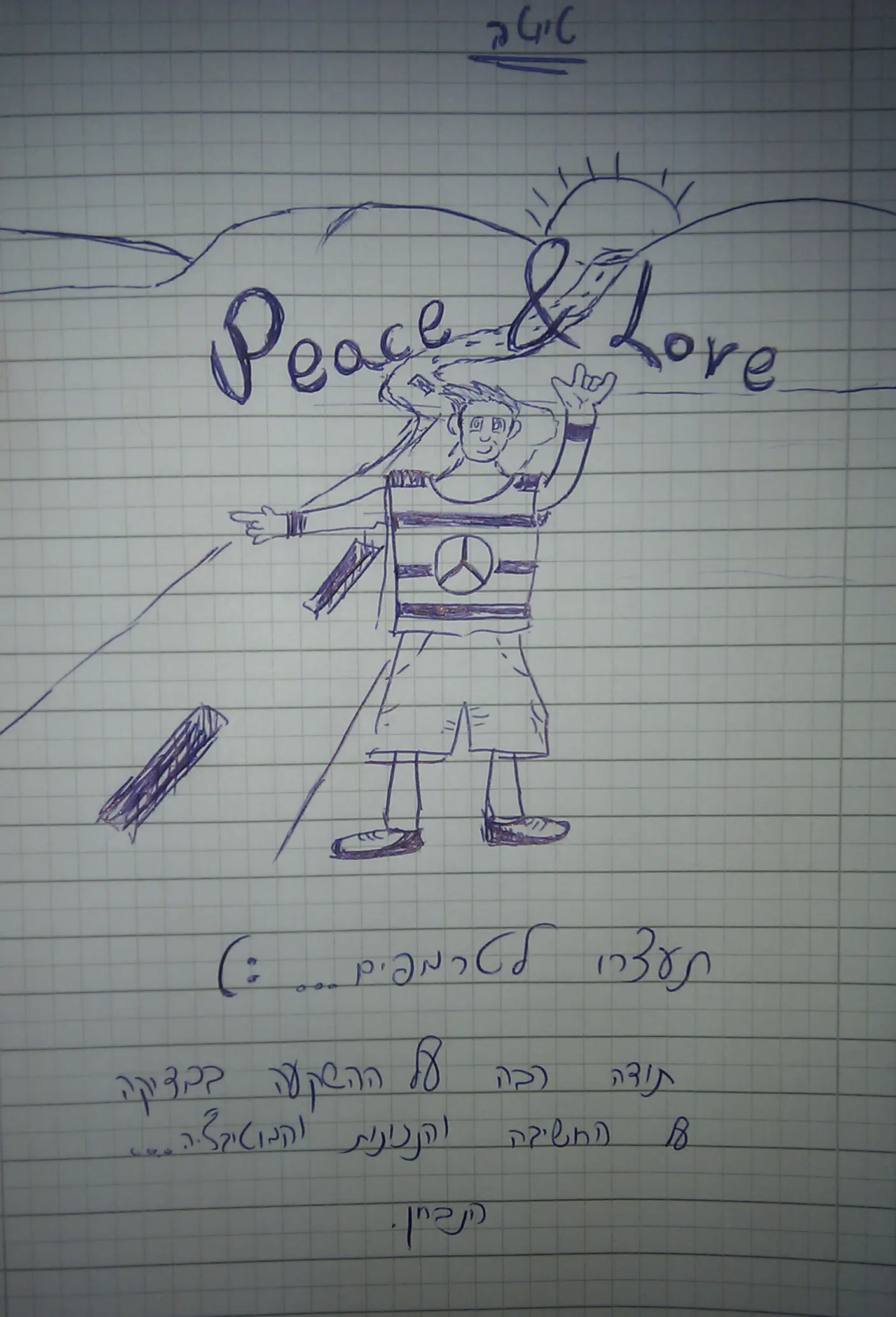 בגלל שהיה לי פיזיקה אח"כ החלטתי לנהוג במנהגי הקבוע כשיש זמן עודף בבגריות---> לצייר על הדף האחרון ציור נחמד שיעלה לבודק חיוך- בגלל שזה אזרחות, ורציתי למסור מסר שיש עליו קונצנזוס: (ובלי להראות שאני דתי, כולם