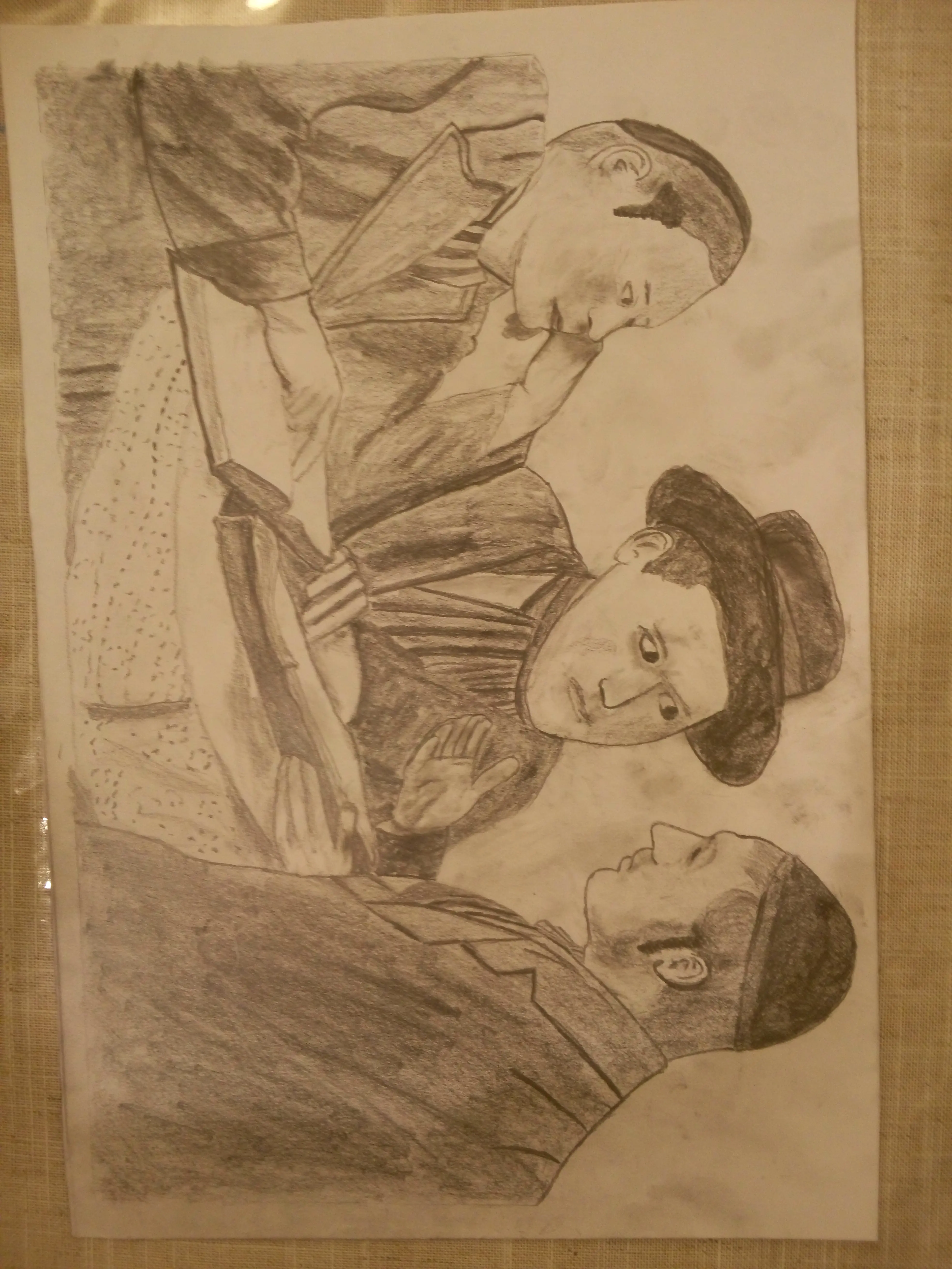 ב- וואו. זה ציור פשוט מ ע ו ל ה !! מה אתה מתנצל בכלל?? מושקע, ומדוייק, ומלא הבעה. נכון, יש פיקשושים קלים פה ושם. אבל זה ציור ממש ממש טוב. ואתה מוכשר ביותר.