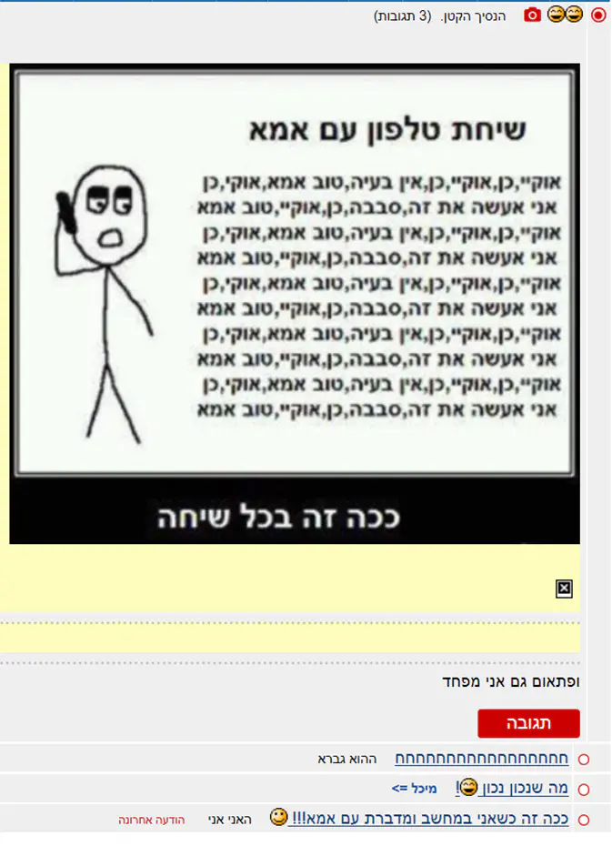 לא יודעת כל מני קטעים קרועים שעושים בפורום בפורים בעיקר ..עוד תראי