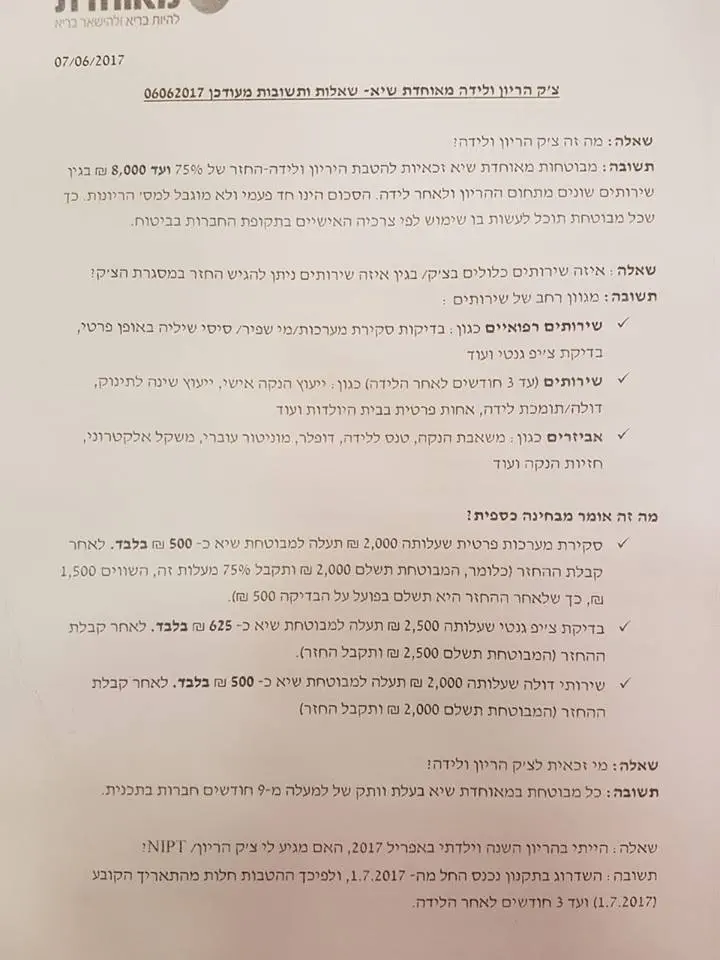 מקבלים החזר עד 2000 ש"ח בהריון ועד 50% מההוצאה על בדיקות פרטיות, קורסי הכנה ללידה, דולה, יועצת הנקה ועוד
