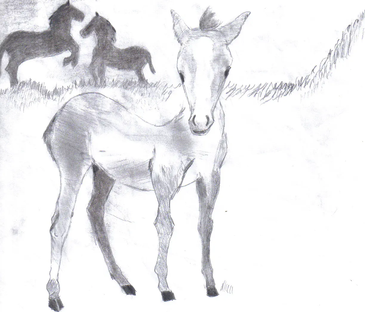הסוסים מאחור פראיים כל כך,ואילו זה שמלפנים נראה ילדון כזה, צעיר. :-)