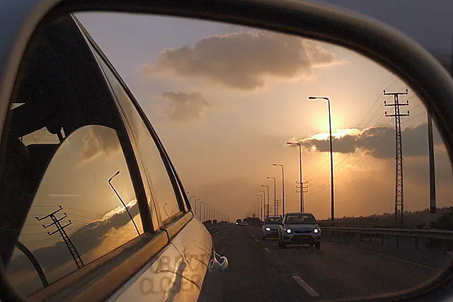 יפה גם ההשתקפות של השמש והעננים בשימשת - חלון הרכב!