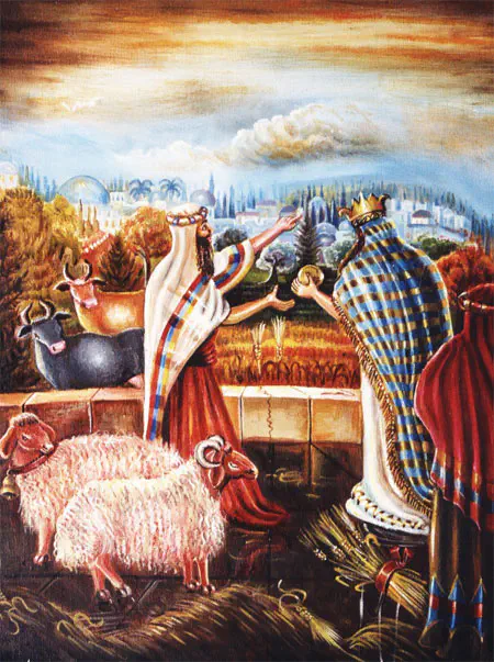 בתמונה שלפנכם: דוד המלך קונה את הגורן מארונה מלך יבוס.