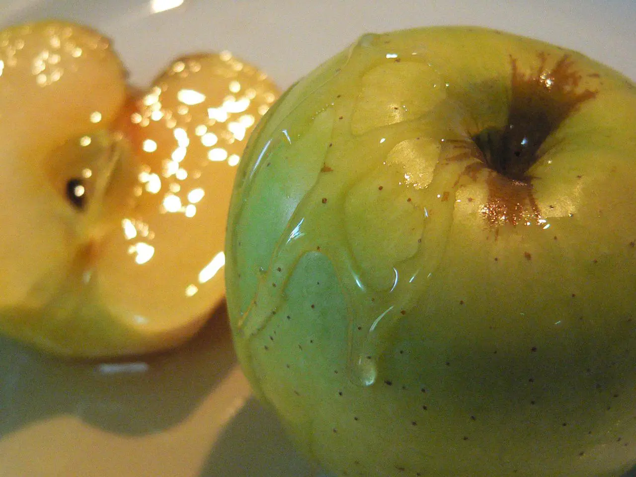 תפוח בדבש, ובלי עיבוד של התפוח בעזרת כימיקלים כדי שיראה יפה.