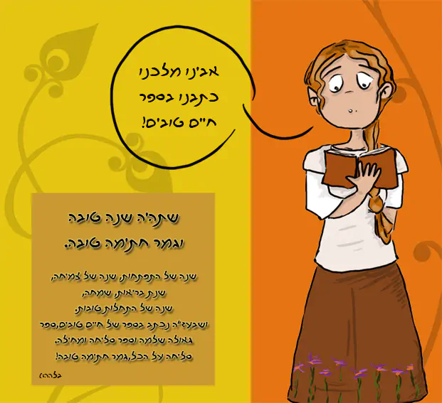 * לגבי הטקסט- כתוב פעמיים "גמר חתימה טובה". אפשר למחוק את העליון, ואז להגדיל את ה"גמר חתימה טובה" שלמטה שיהיה בגודל כמו שלמעלה, או אפשרות שנייה למחוק את ה"גמר חתימה טובה" שלמטה.