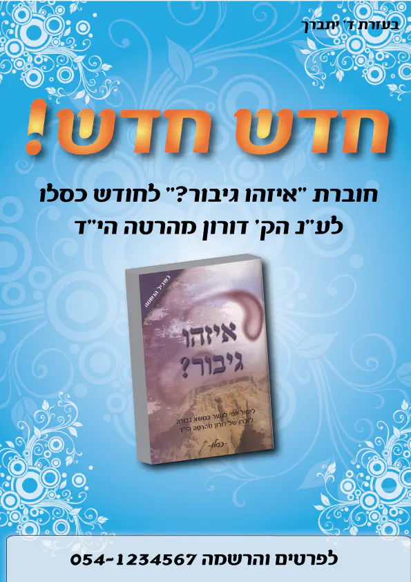 את הטקסט השחור מעל לחוברת מומלץ לעשות בפונט רגיל ורק את "איזהו גיבור?" להדגיש בפונט מודגש/ כבד.