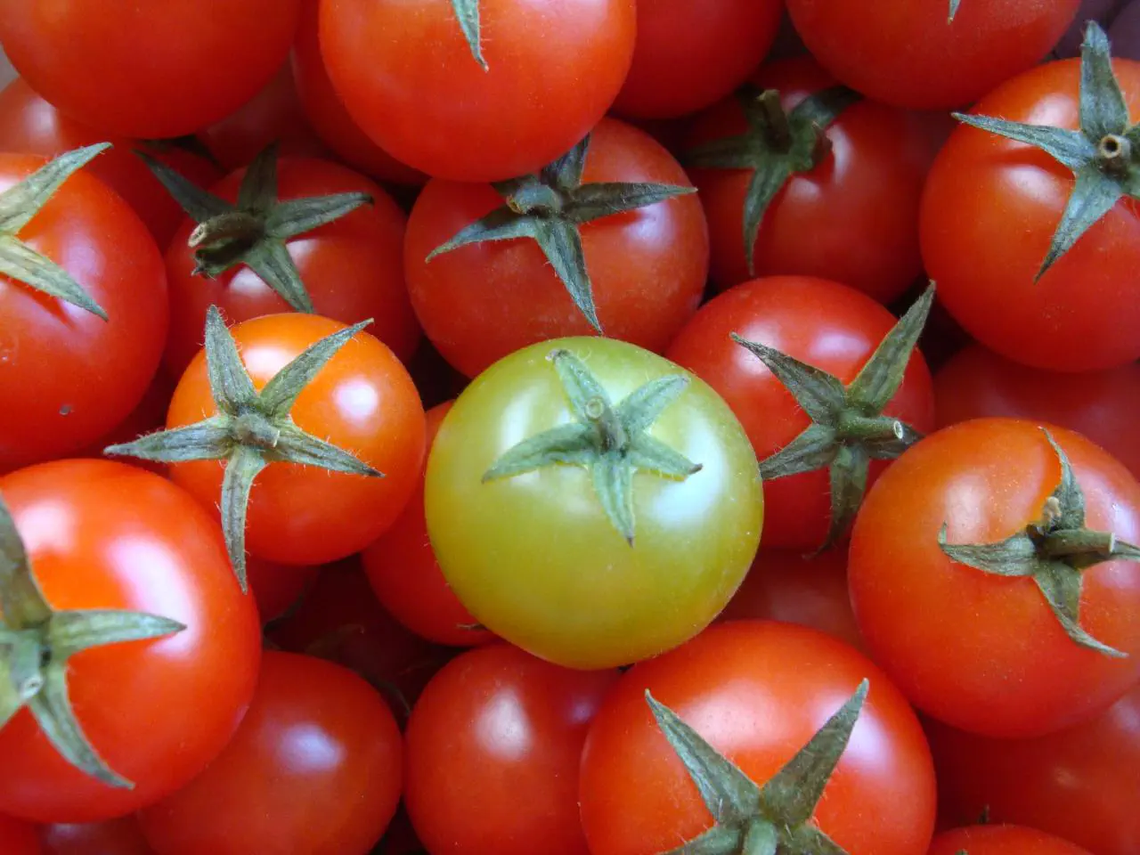 יפה הניגוד בן העגבניה הירוקה לשאר העגבניות.