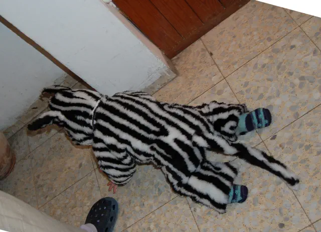 סתם חיפשנו תחפושת וראיתי איזה בד של זברה ולא הסכמתי שיתנו לו משהו קנוי