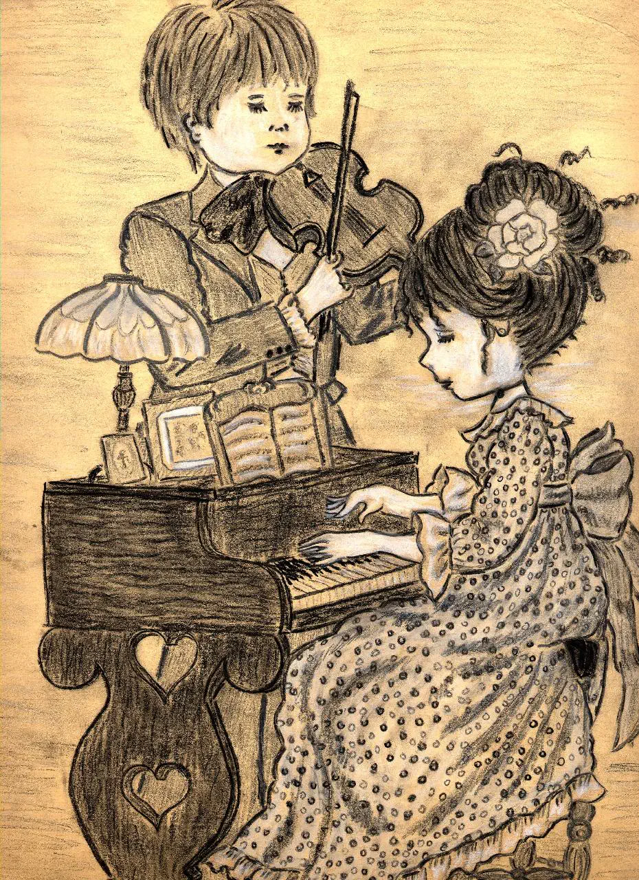 אך הייתי משנה את יד ימין של שניהם: פרק היד של הבת אמור להיות דק ואז מתרחב, ושל הבן- המבנה והאצבעות. תמיד אני ממליצה לאנשים לבקש ממישהו שיעמוד בתנוחה שהם מציירים (במקרה הזה- שמישהו יחזיק מקל ביד בתנוחת נגינה) ואז הציור אמיתי יותר... ממש אהבתי את התסרוקת של הבת!! קבלי ציון- 100!