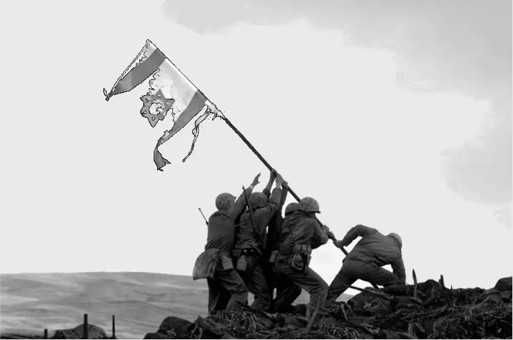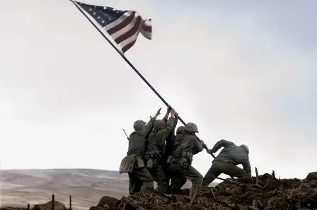 קרב ארה"ב יפן על האי איוו ג'ימה, הנפת הדגל על פסגת הר סוריבאצ'י,שלהי מלחמת העולם השניה.