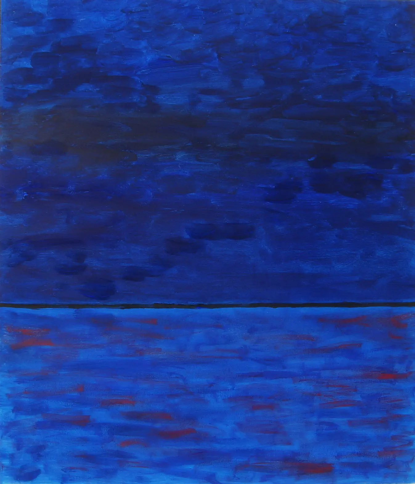 אני חושבת שאם היית משתמש בכתום, הצבע המשלים של כחול, במקום באדום הוא היה משתלב בצורה מעניינת יותר. האדום קצת מאולץ. הפס השחור בין שני החלקים גם כן הפריע לי קצת. היה עדיף לעשות מעבר ישיר.