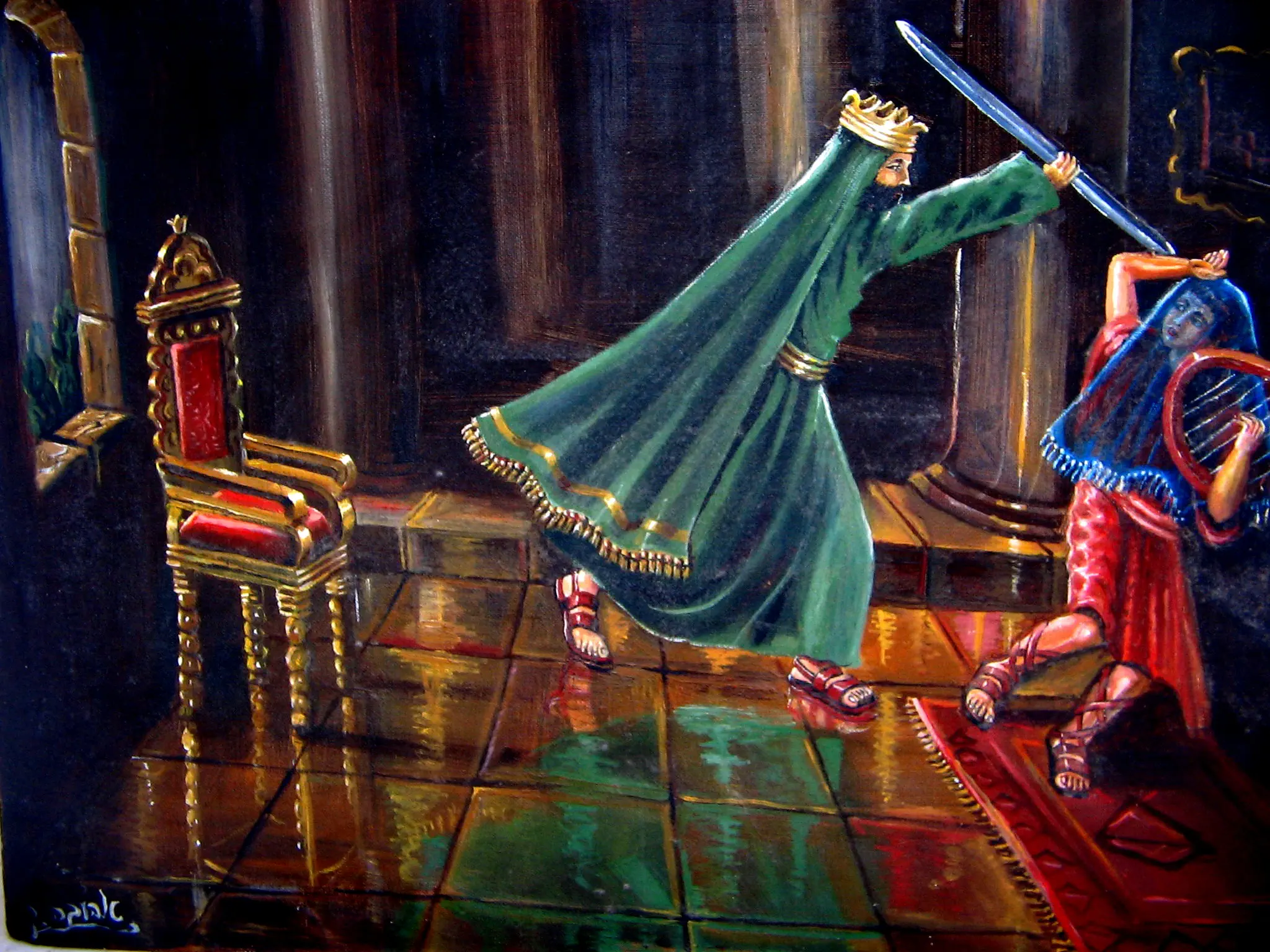 הציור ממש יפה! אבל התנועה ביד של דוד לא ניראית כ"כ הגיונית...