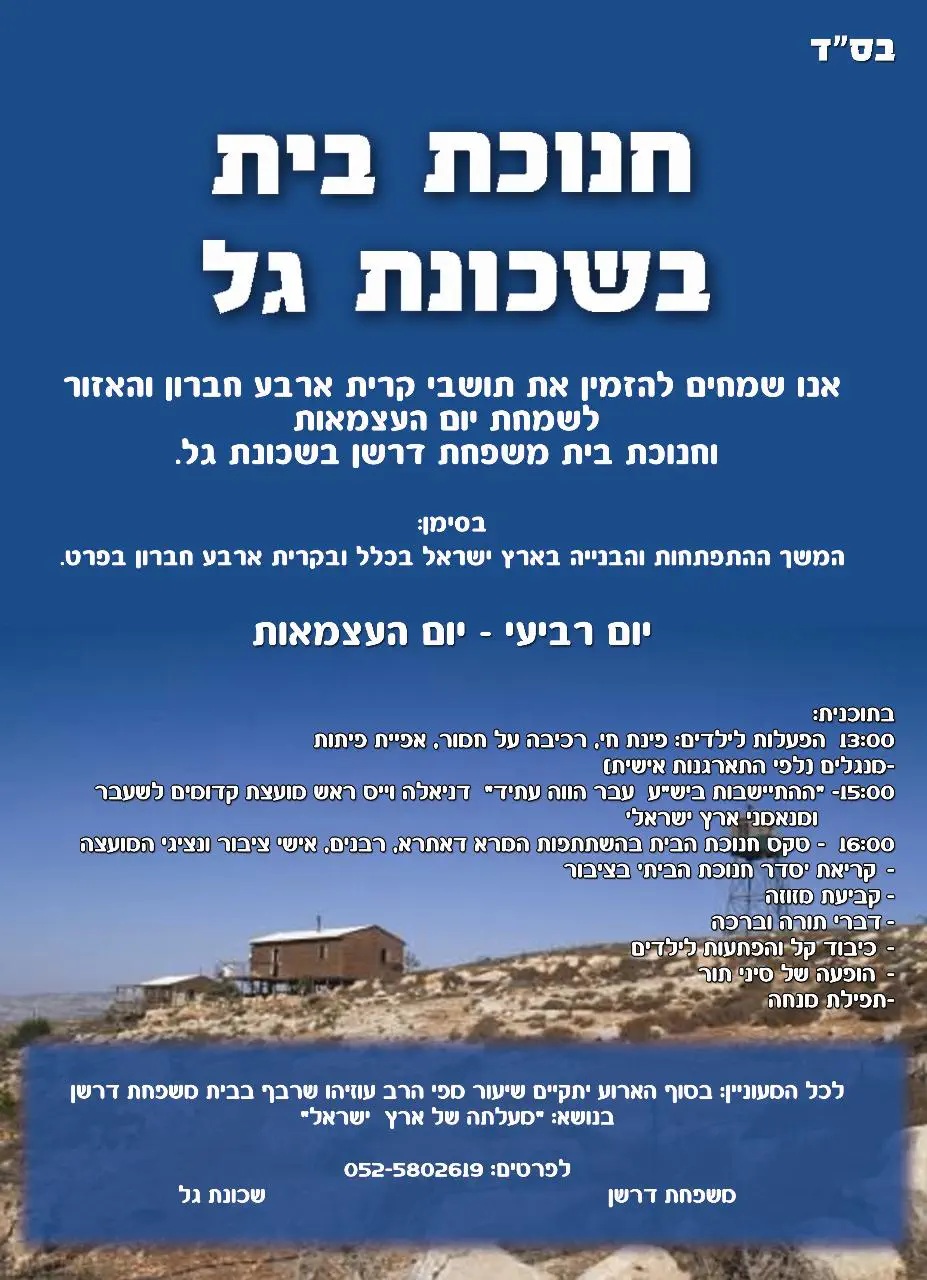 צבעים טובים ונחמדים - יישר כח. ועכשיו כמה הערות: א. הבס"ד חייב להיות קטן יותר. הוא גדול מידי ועם כל הדתיות שבענין אין ענין שהוא יהיה בגודל של חצי כותרת.. ב. כדאי לנסות להגדיל ממש את הכותרת הראשית, זה אמור למשוך את העין ושיראו את זה ממרחק גדול. ג. מבחינת גדלי טקסט - הכל נראה באותו גודל ואין היררכיה בדברים כאן... הכל באותה חשיבות? את כל המידע אנחנו צריכים לקלוט ולזכור? זה לא הולך ככה. יש כמה דברים שהם הכי חשובים. כותרת, כותרת משנה ותאריך (עם יום ושעה). כל השאר יכול להיות יותר בקטן כי זה נתינת מידע נוסף את הלפרטים גם הייתי מנסה להגדיל ממש - כי זה משהו שמקשר בין הציבור לגבעה.. ד. יש הרגשה של ריקנות בחלק העליון של המודעה, היה טוב אם היה שם משהו שמוסיף ענין וחיים עם איזה עיטור או משהו.. צריך לחשוב איך מוסיפים לזה חיים.