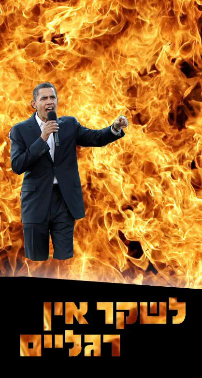 הגוף של אובמה צריך להיות קצת רך יותר במעבר החד בינו לבין האש, אולי לגרום לה להשפיע קצת יותר על צבעי הגוף שלו (אור, לא שריפה)... טיפ טיפה שקיפות בקצה תעשה את העבודה הזו יופי.