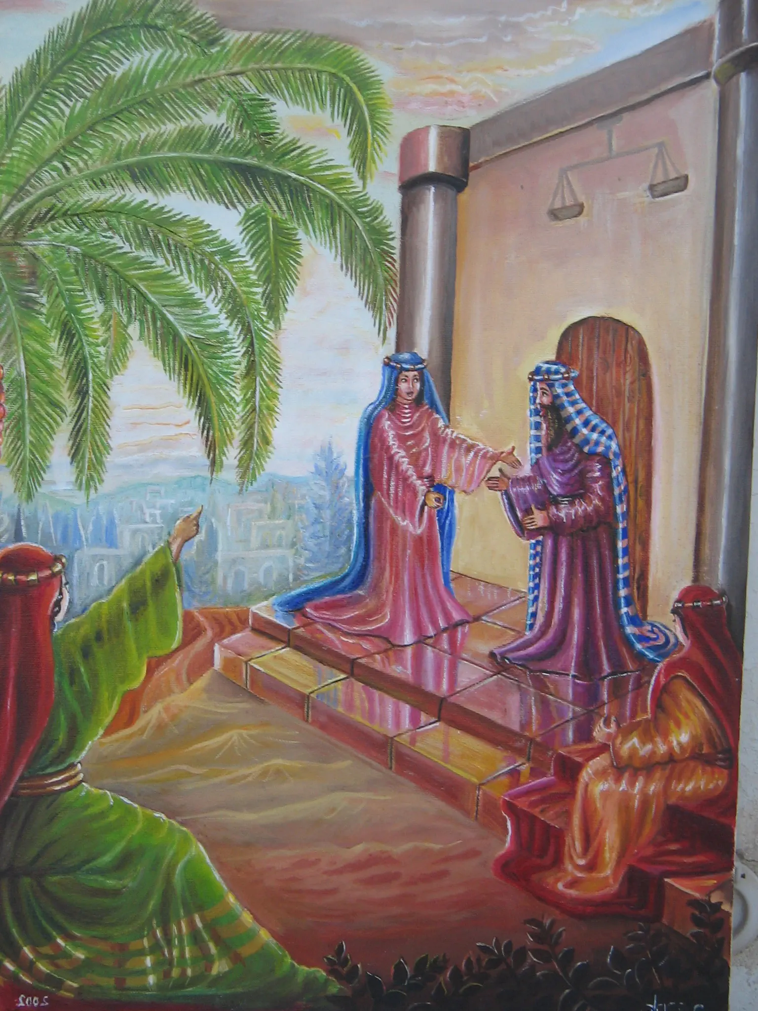 אני כ"כ אוהבת ת'ציורים שלך:)רק אולי הריצפה טיפה מפריעה.. זה נראה כמו הרים וגבעות והמדרגה שהמתווכחים עומדים עליה קצת עקומה.. בכולופן, יפיפה כמו תמיד:)
