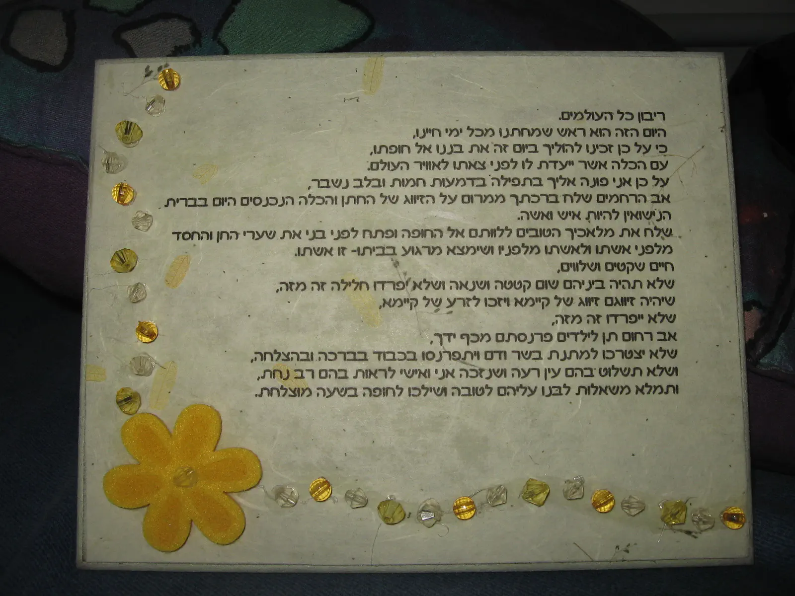 תפילה שהכנתי לחתונה של בת דודה שלי