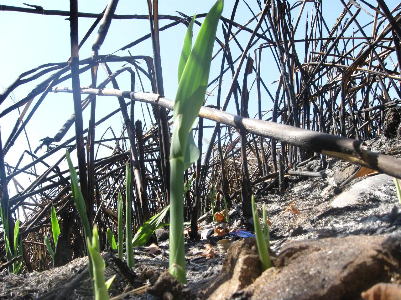 יש משהו בזה שהקנה מפריע לאחידות של הצמחים הישרים שנמצאים בקדמת התמונה, אבל שים לב שהירוקים- הניצנים החדשים עומדים זקופים, והישנים השרופים נופלים, זה מוסיף לניגודיות ביניהם.