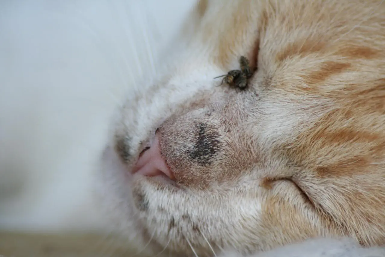 לקח לי קצת זמן לקלוט שזה חתול מקרוב עם דבורה (או חרק) על העיין~