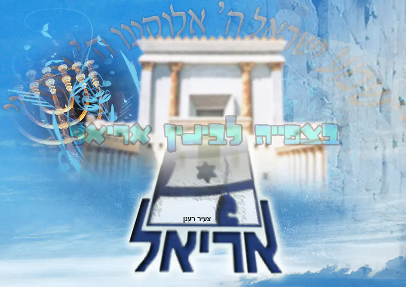 זה יפה ויש לזה עוד פוטנציאל ולכן כדאי ממש לשפר טיפה. כדאי לשים את הלוגו בפינה. זה הרבה יותר מתאים וגם לא "תקוע" באמצע. את ה"שמע ישראל" אולי היה עדיף שלא יהיה. אולי בכלל לא ואם כבר כן אז עדיף אולי פס' אחר שיותר קשור לביהמ"ק או משהו כזה... וגם להשתדל שיראו את זה - נניח כאן את המילה "שמע" בקושי רואים ואת "אחד" כבר ממש ממש לא... ואני אולי הייתי מוזיזה את הסמל של אריאל למטה.. לא סגורה על זה אבל שווה לנסות..