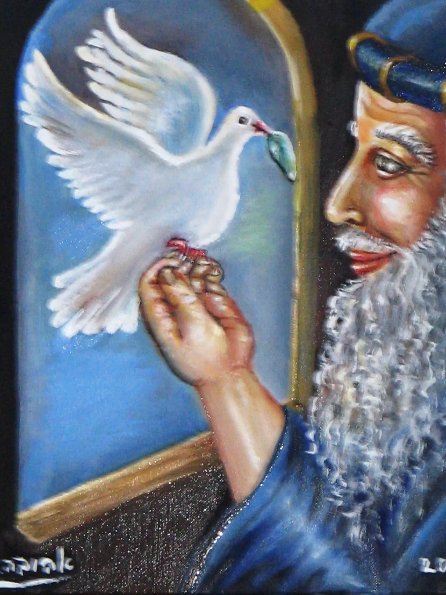 בס"ד ובהשתדלותינו! איזה יופי! יפה מאוד מאוד, בכל פעם אני מתפעלת מחדש מהיצירות שלך! יש בהם עומק, דמיון וממש רואים את התחושות (במקרה הזה ממש רואים את האהבה של נוח ליונה קורנת מעיניו) עוברות דרך הציור! עלי והצליחי!