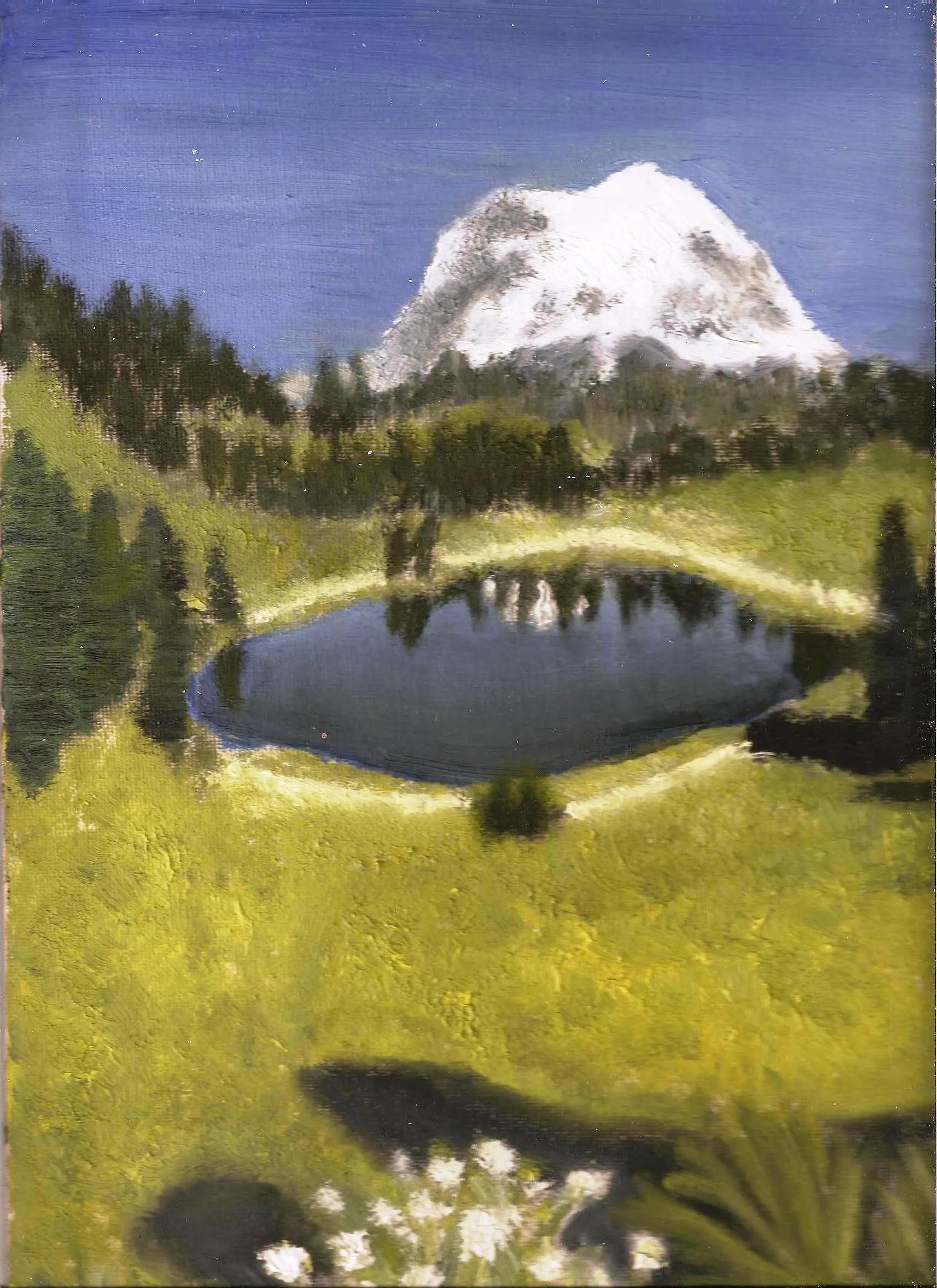 זו דוגמא מצויינת לחיבור בין ציור וצילום. בשני התחומים האלו מותר ולפעמים מומלץ לעצמים ונוף רחוק להיות מטושטשים, אבל הגופים הסמוכים אלינו חיבים לקבל דגש מיוחד להיות ברורים מאוד. לכן הייתי מציע לך לעבור שוב על הציור המקסים הזה, ולהדגיש את הפרחים והשיח שבתחתית התמונה, כך שיקבלו תשומת לב ודיוק לפחות כפי שהאגם המתוק הזה קיבל..