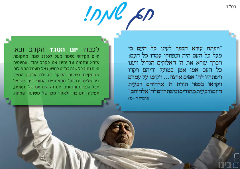 בעברית, בצבעי כחול תכלת ורקע לבן מיוחדת בעיני כיוון שחג הסיגד היו חג שבתקוה יתפוס את מקומו בתרבות הישראלית, ויפה לבטא את החג שעולה לארץ ולאט לאט נקלט