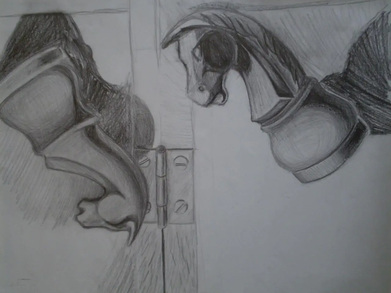 רישום בגרפיט על נייר. גודל 50 על 70. עבודה שעשיתי מזמן במסגרת מגמת אומנות. המודל היה לוח שחמט פתוח ושני סוסי שחמט.