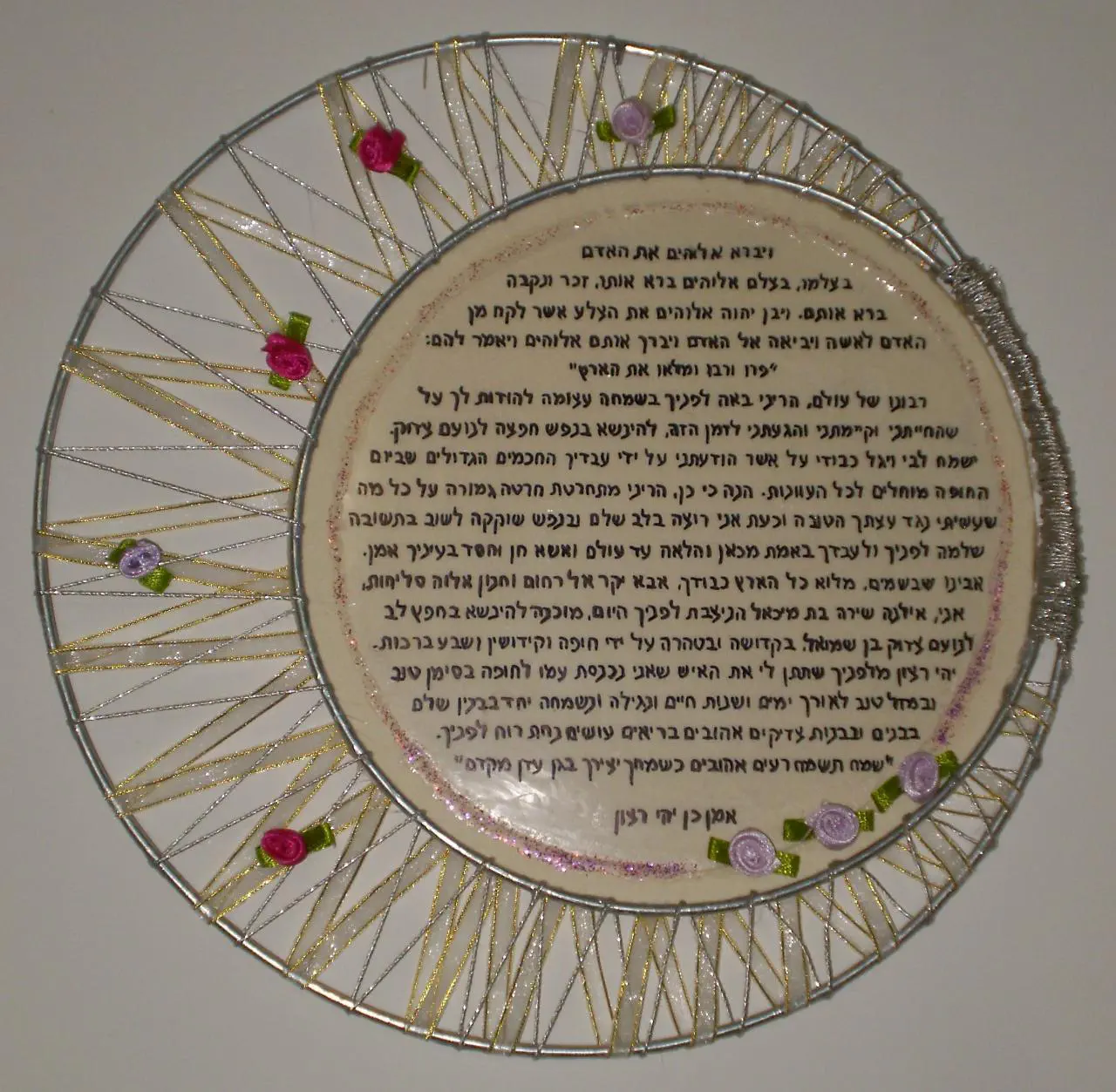 על היצירה עצמה אין לי הערות, אבל הצילום קצת בעייתי. שימוש בפלאש (כמו שניתן לראות) יהפוך את התמונה לזוהרת מדי ושימוש בלעדיו יצור (גם את זה ניתן לראות) תמונה חשוכה מדי.