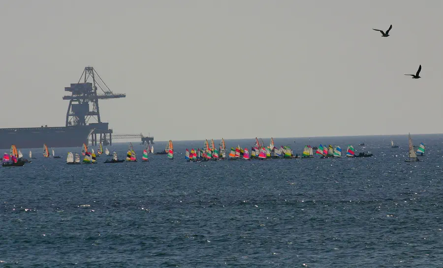 קיסריה. משמאל מתקן הקידוח ליד חדרה.